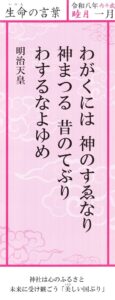 生命の言葉(1月) 2026/1/3 生命の言葉 あけましておめでとうございます 2026年(令和8年)が始まりました。 新年にあたり今年の目標というのを立ててみたい。 「自分で決めたことを続けること」 我ながら漠然とした目標だけど、去年は3日坊主のことが多くて、勉強にしろ、運動にしろ、趣味にしろ、自分でできたといえることがほとんどなかった。 来年の正月は、何か1つでも胸張って言えるように、継続していきたい。 今年も健康に2026年が過ごせますように